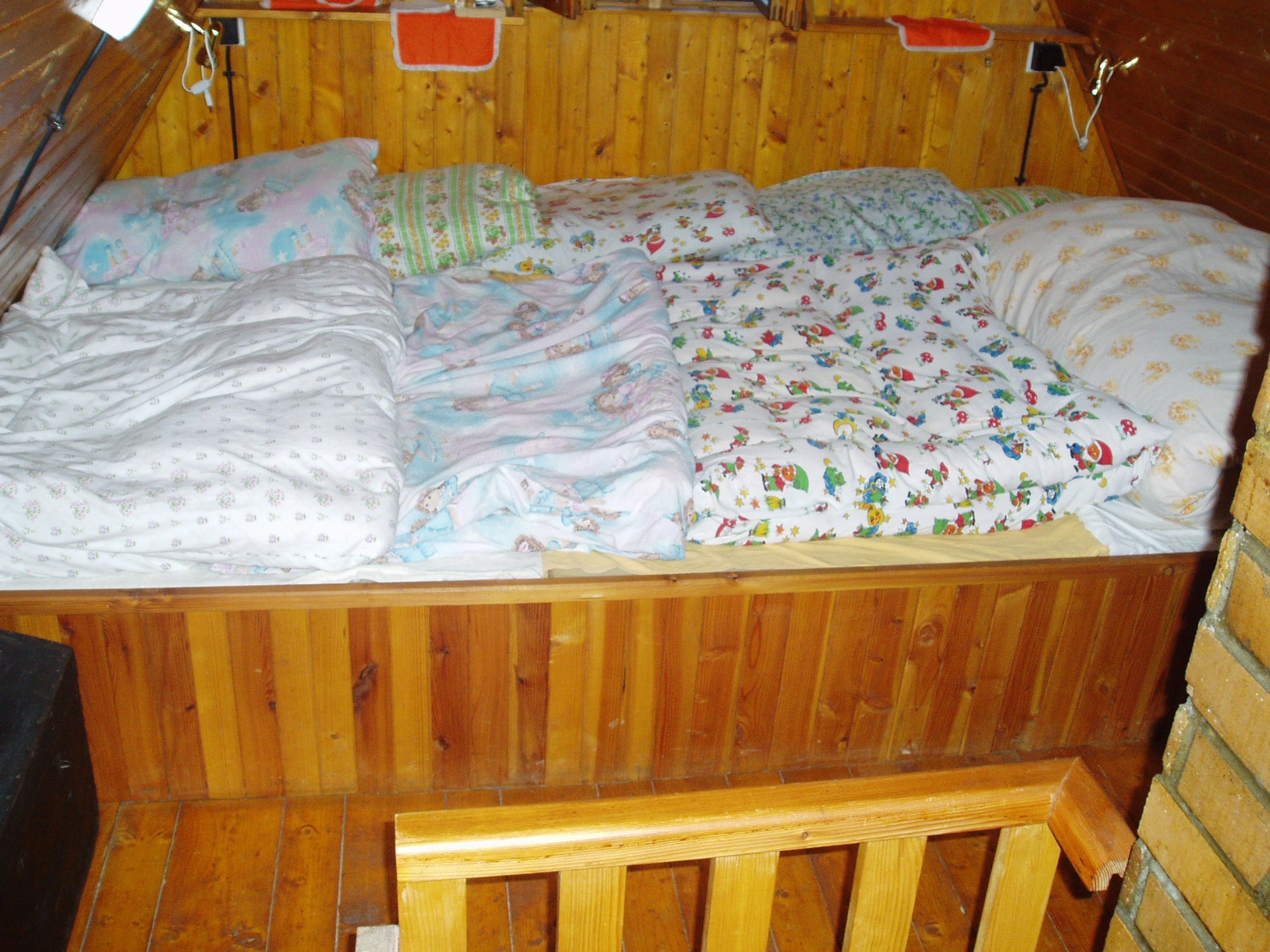 Na 2.poschodie sa dostanete strmšími schodmi. Tento priestor je určený výhradne na spanie. Izby tu nie sú predelené žiadnymi dverami. Jednu časť tvorí "letisko" - štyri spojené postele. Tu sa vyspia min. štyria dospelí, kľudne aj s viacerými deťmi. Kúsok ďalej je väčšia posteľ, ideálna pre jeden pár. Vo vedľajšej prístavbe sú na zemi 2 kvalitné matrace. Menší balkón na vyvetranie.